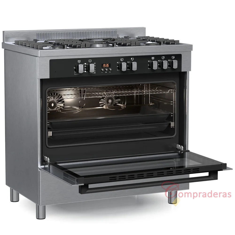 Cocina de 5 Hornallas (4 quemadores + 1 quemador de triple llama + wok) con encendido eléctrico automático.