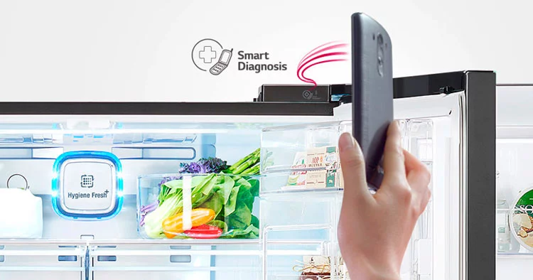 Si el refrigerador experimenta un problema, Smart Diagnosis ayudara a remediar la situación. Al detectar cualquier inconveniente, Smart Diagnosis™ de LG es una manera fácil de solucionar tus problemas. Solo llama al Servicio al Cliente de LG, coloca tu teléfono en el Refrigerador y Servicio al Cliente podrá emitir un diagnóstico rápido para darte una solución, previendo visitas técnicas que pueden resultar costosas e innecesarias.