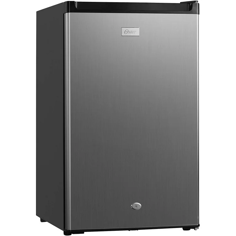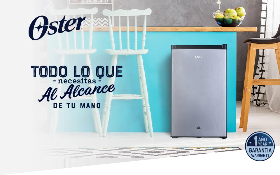 Perfecto para espacios reducidos. el frigobar Oster es la solución compacta perfecta para tus necesidades de refrigeración. Diseñado para resistir y destacar en cualquier entorno. Ofrece la combinación ideal de rendimiento, comodidad y un estilo elegante en acero inox y laterales negros.